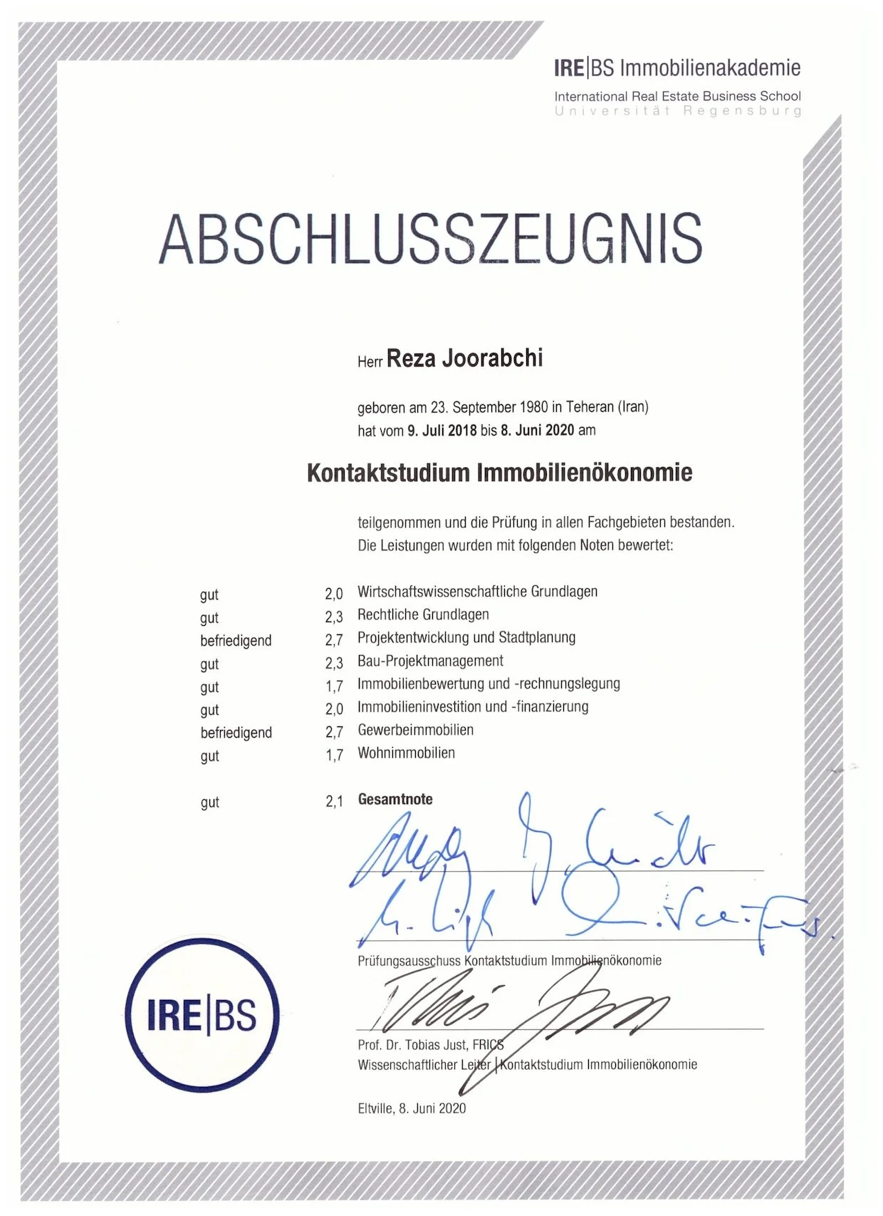 Reza Joorabchi ist Deutsch-Iraner-Kanadier. Er erhielt 2003 seinen Bachelor of Science in Management von der London School of Economics and Political Science (LSE) und 2009 seinen MBA vom Center of Entrepreneurial Studies am Babson College, USA. 2020 absolvierte er schliesslich sein Immobilien Ökonom (Postgraduate), von der Universität Regensburger, Int’l Real Estate Business School.